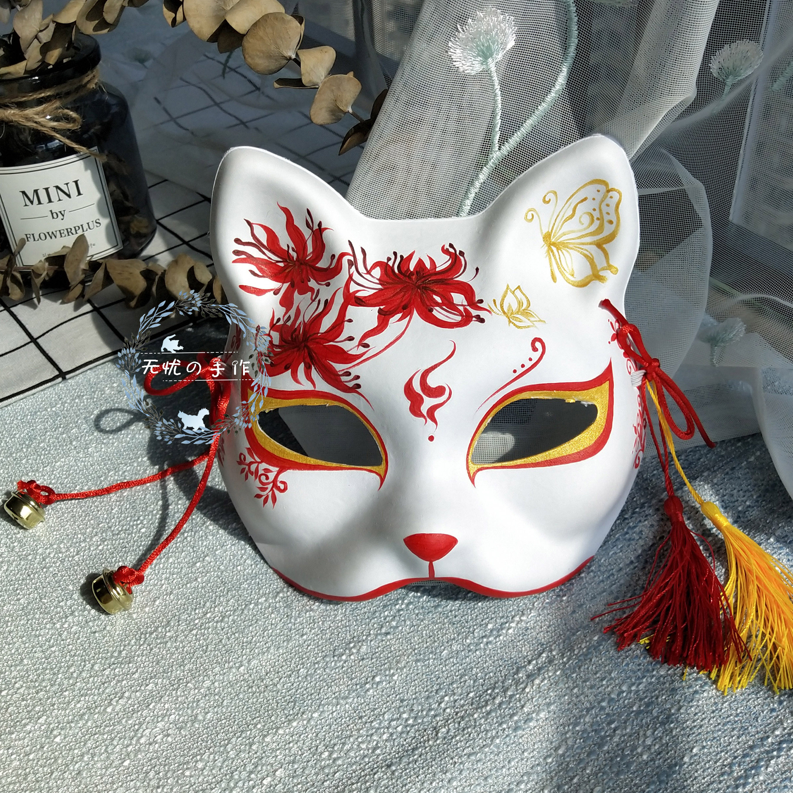 紅色系手繪面具二次元cos貓咪狐狸面具流蘇鈴鐺面具動漫cosplay 蝦皮購物
